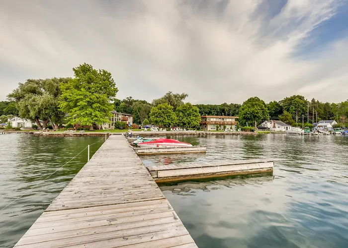 The 45 m² Canandaigua Lake Romantic Getaway With Boat Slip! features views of the lake and is situated around 10 minutes by car from Canandaigua Lake. Wi-Fi and parking are provided for guests' utmost comfort.